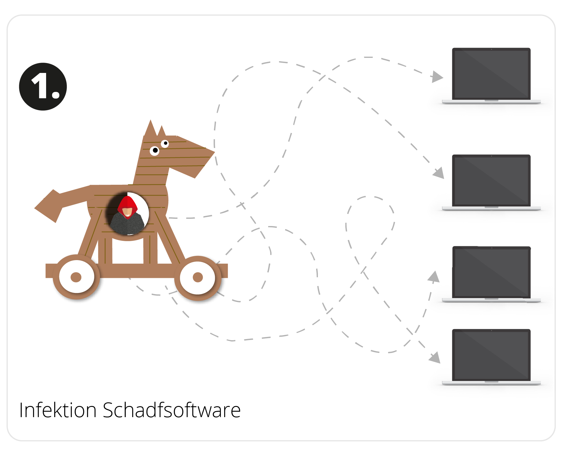Neben dem verabredeten Zusammenschluss können Hacker aber auch zuvor weltweit Rechner infizieren und sie wie eine virtuelle Armee gezielt fernsteuern. Die okkupierten Rechner können sogar an andere Interessenten weitervermietet werden. So können Kriminelle z. B. Nutzungsrechte von infizierten Rechnern kaufen und ihren Angriff starten. Auf diese Weise kann der Ursprung der Attacke nur schwer zurückverfolgt werden. DoS- und DDoS-Attacken zielen weniger darauf ab, ein System zu infiltrieren, wie das bei anderen Attacken der Fall ist, können aber Bestandteil eines größeren Angriffsplans sein (kann z. B. zur Ablenkung dienen, um an anderer Stelle das System anzugreifen).