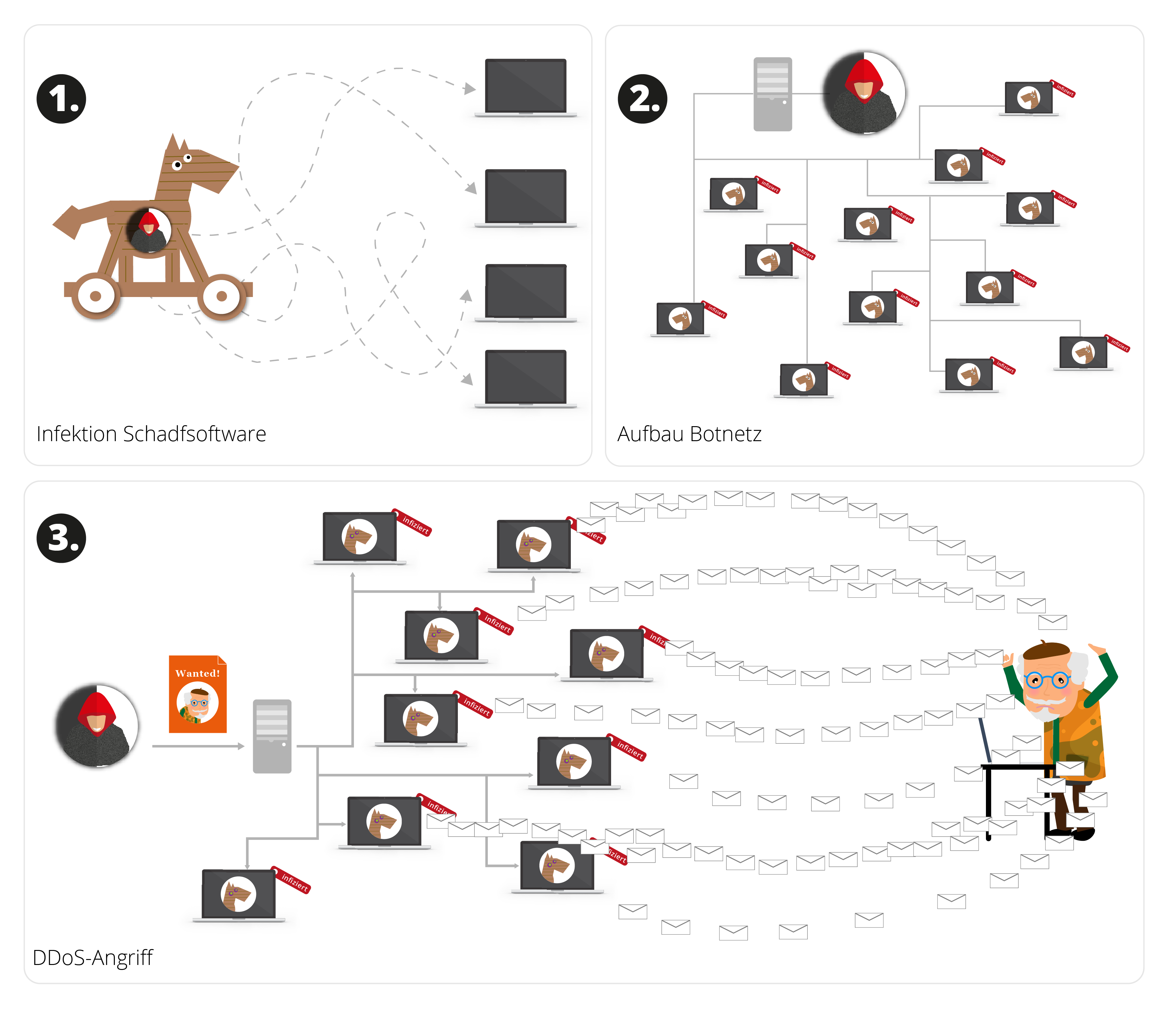 Abb. 2: Veranschaulichung eines DDoS-Angriffs