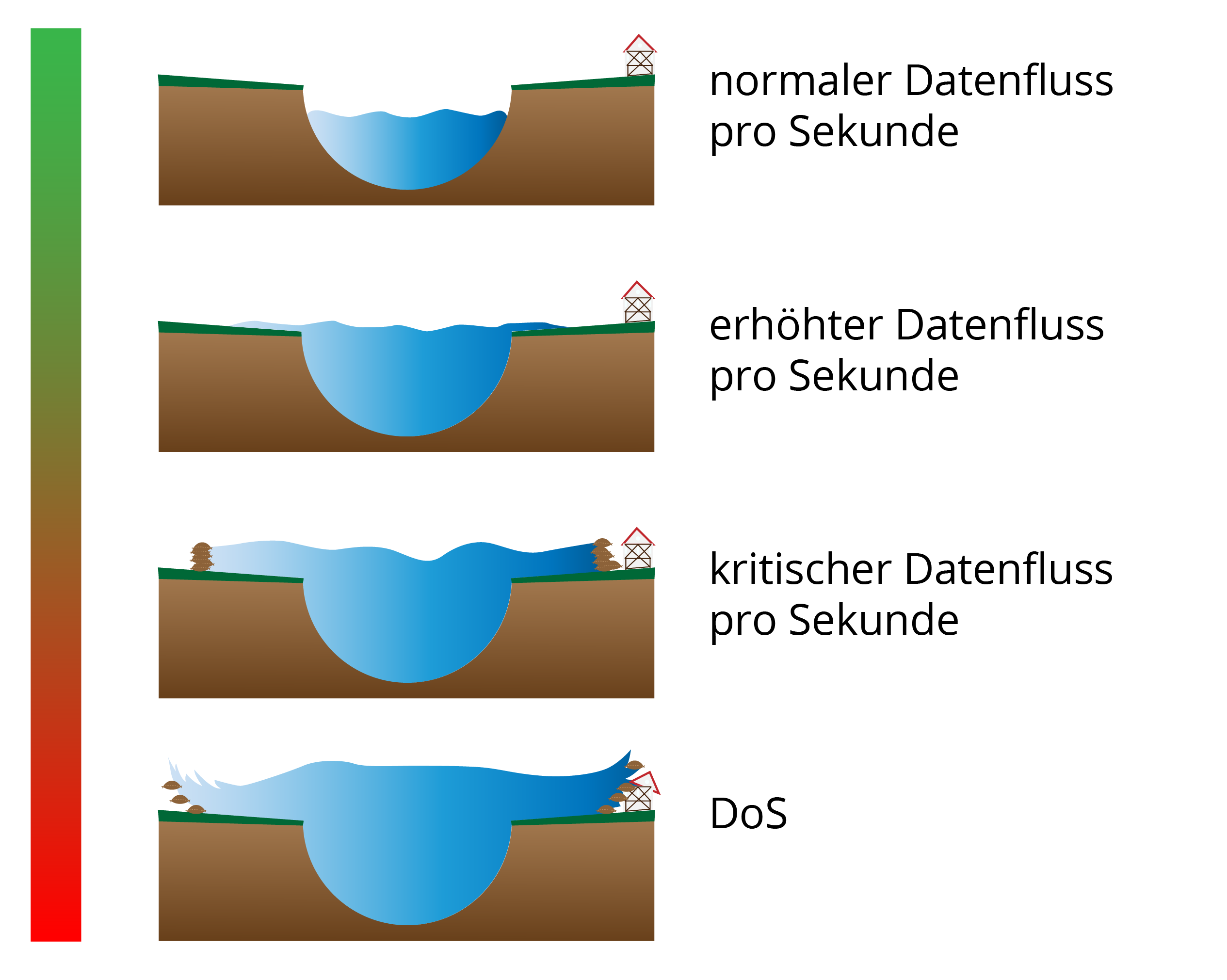 Auf diese Weise können Netzwerkgeräte, Betriebssysteme oder Serverdienste so beansprucht werden, dass reguläre Anfragen nur noch verzögert oder gar nicht mehr beantwortet werden können. Der Dienst wird verweigert.