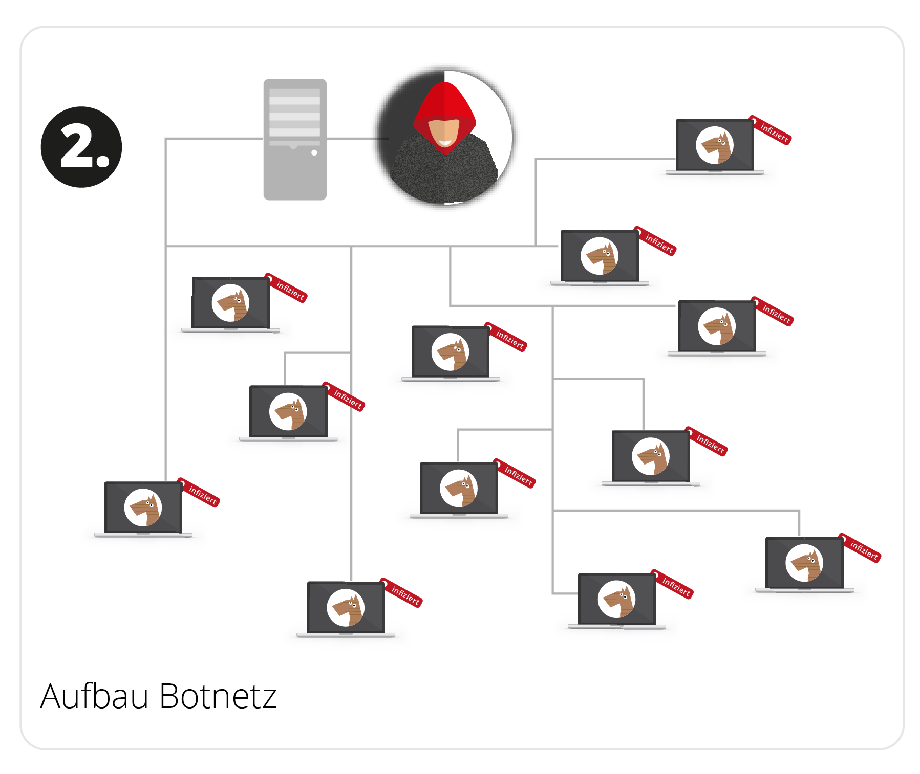 Besonders effektiv sind solche Attacken, wenn ein System von mehreren Rechnern oder Servern parallel und gleichzeitig mit Anfragen konfrontiert wird. Hierbei wird dann von verteilten DoS-, also DDoS (D= Distributed = verteilt; Distributed Denial of Service)- Angriffen gesprochen, die sich auf umfangreiche Botnetze stützen (Bot = Roboter; Botnetze = Zusammenschluss mehrerer Computer).
