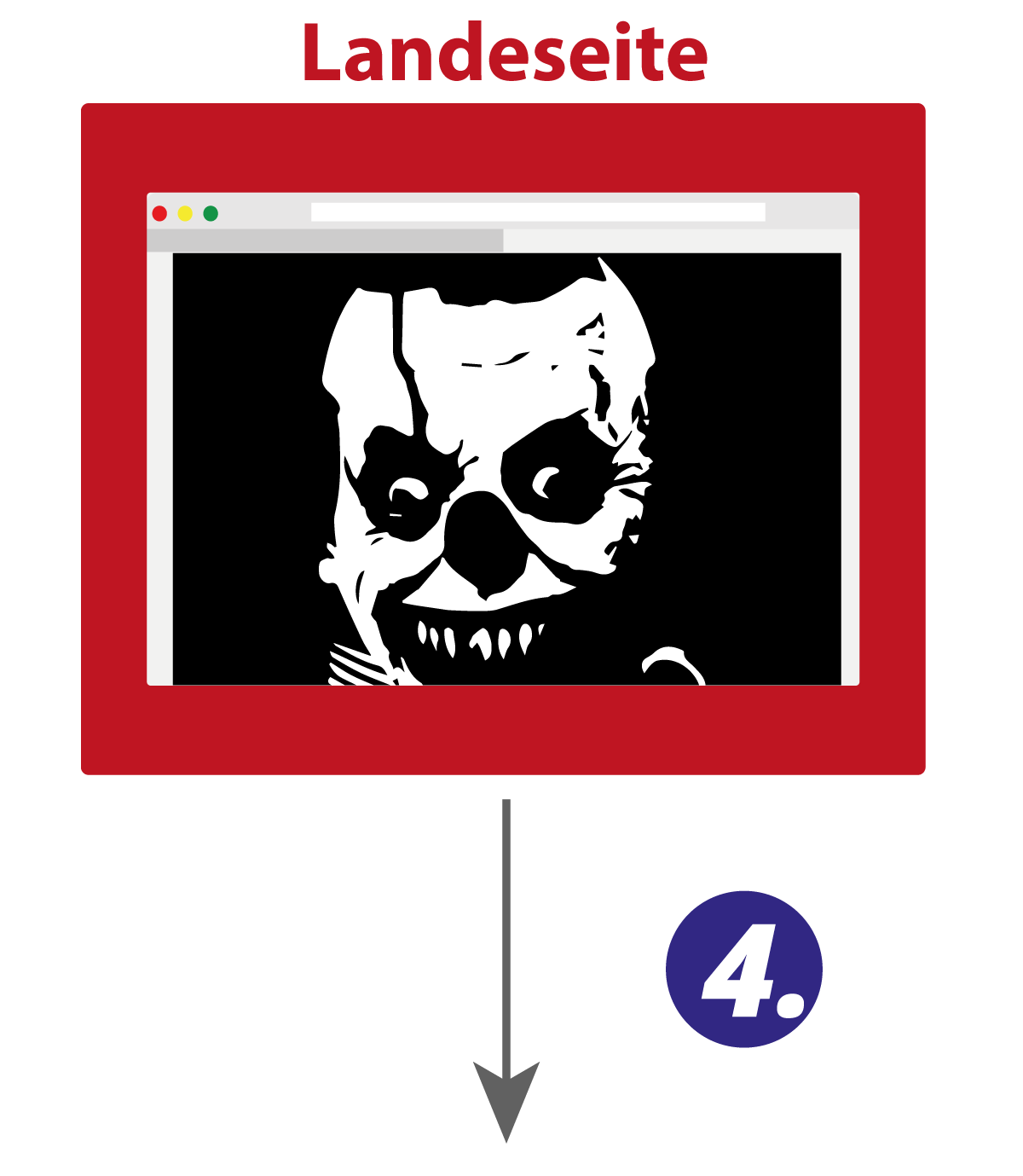 - Der Nutzer geht auf eine bestimmte Webseite oder klickt auf eine infizierte Spam-Nachricht und wird zu einer präparierten Webseite, auch Landeseite oder Landing Page genannt, weitergeleitet. Auf der Landeseite werden Daten vom Nutzer gesammelt, wie z. B. verwendete Browser-Version und dann
